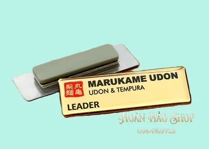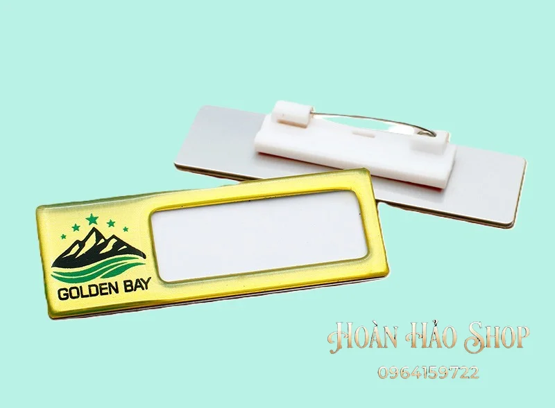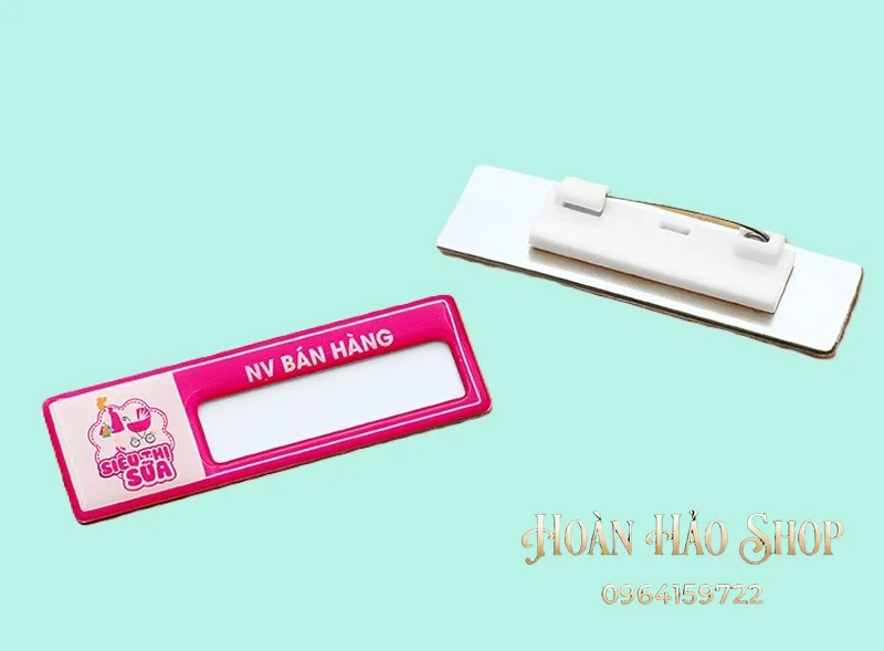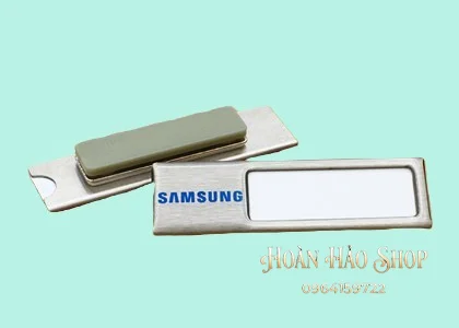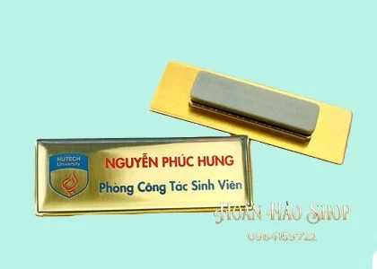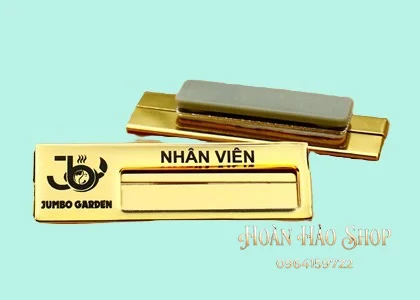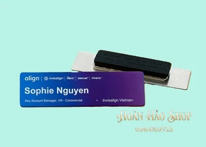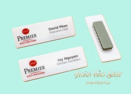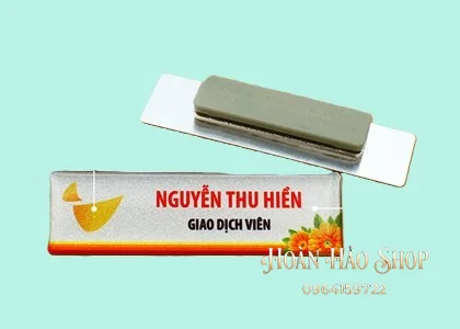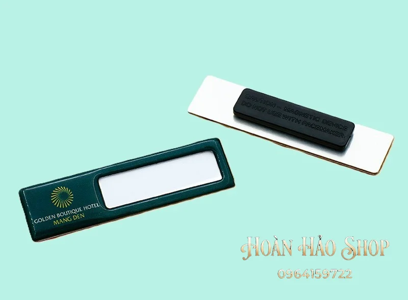 - Tùy chọn ghim cài hoặc nam châm tiện lợi: Khách hàng có thể lựa chọn gắn kim gài chắc chắn hoặc nam châm 3 hạt lực hít cực mạnh để cố định bảng tên lên áo một cách dễ dàng, không gây hư hại cho trang phục.