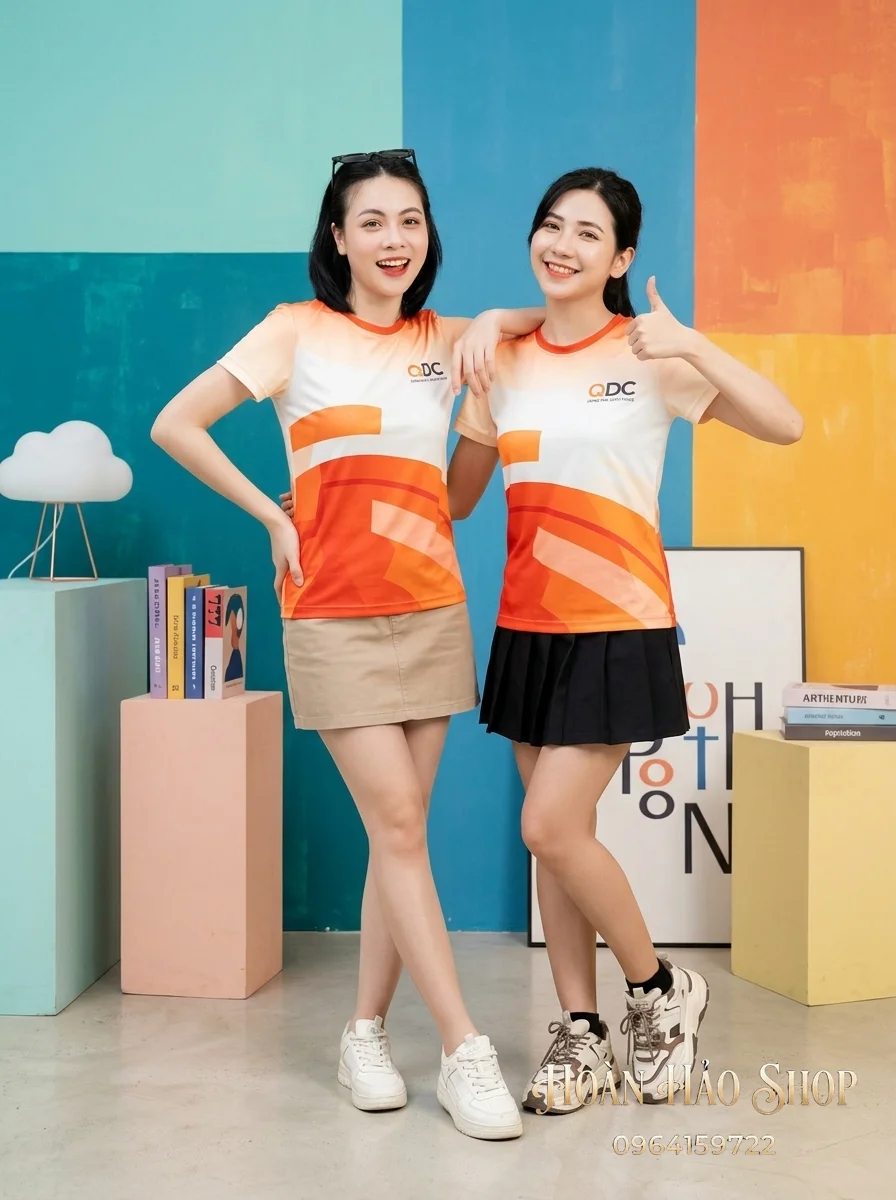 Áo Đồng Phục Nhóm Đi Du Lịch Màu Trắng Phối Cam – Năng Động, Phong Cách, Gắn Kết