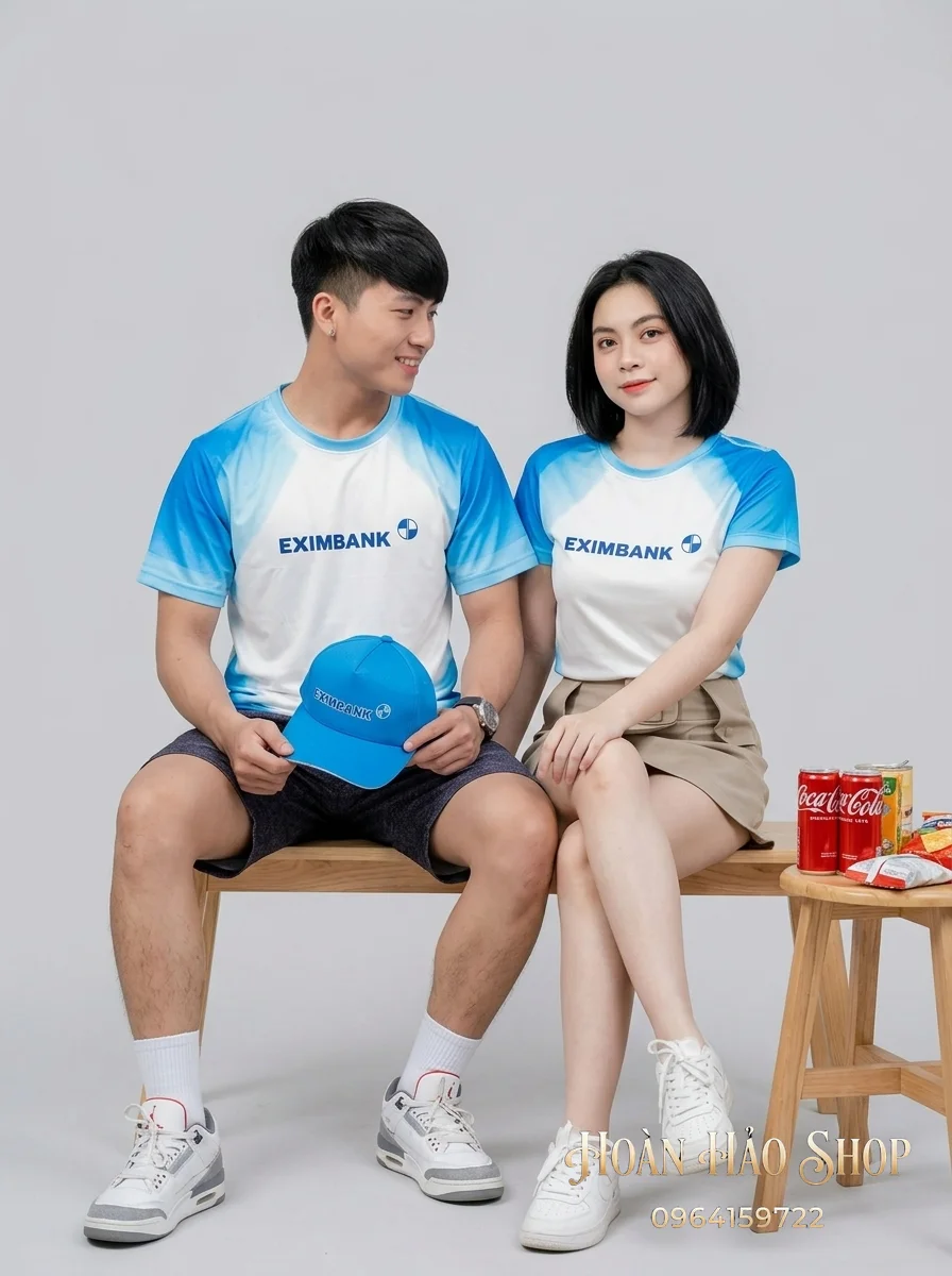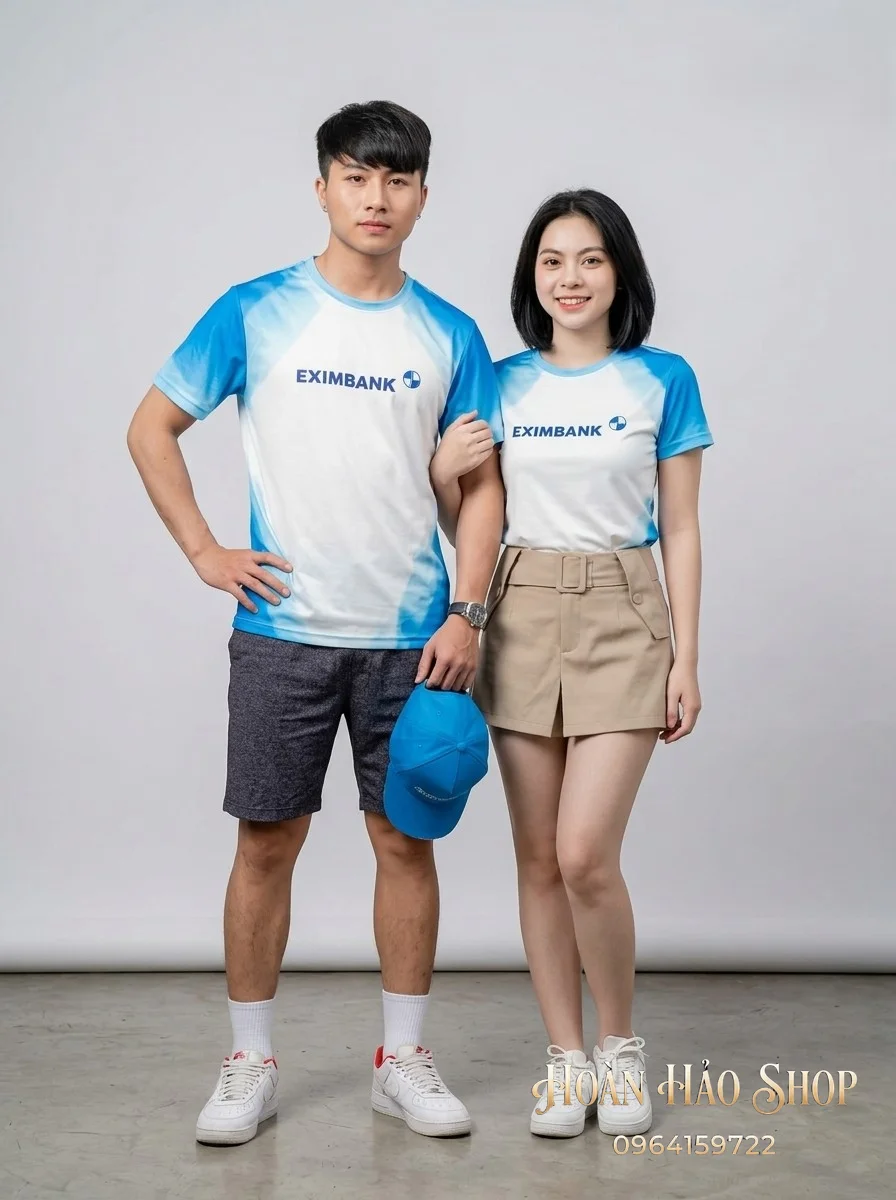 Mẫu Áo Đồng Phục Nhóm Đi Du Lịch Màu Trắng Phối Raglan Màu Xanh