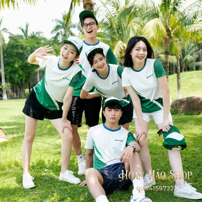 - n Màu Sắc Tươi Mới, Pha Phối Độc Đáo: Gam màu trắng tinh khôi làm chủ đạo, tượng trưng cho sự trong sáng và năng động, được phối cùng các khối màu xanh lá cây in chuyển nhiệt tinh tế ở thân áo. Sự kết hợp này không chỉ tạo hiệu ứng thị giác bắt mắt mà còn thể hiện tinh thần sáng tạo và hòa nhập của nhóm. Đây là lựa chọn hoàn hảo để nhóm bạn trở nên nổi bật và tràn đầy sức sống.n